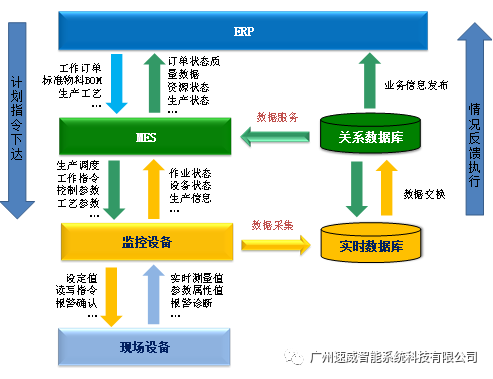 2)執(zhí)行層:實現(xiàn)面向工廠/車間的生產(chǎn)管理,如維護記錄、詳細排產(chǎn)、可靠性保障等。制造執(zhí)行系統(tǒng)(MES)在該層運行。