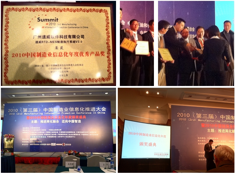 祝賀廣州速威RTD-MES榮獲<2010中國(guó)制造業(yè)信息化年度優(yōu)秀產(chǎn)品獎(jiǎng)